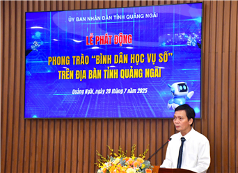 Ngày 28/07/2025, UBND tỉnh Quảng Ngãi đã tổ chức Lễ phát động phong trào “Bình dân học vụ số” nhằm nâng cao nhận thức, kỹ năng số cho người dân địa bàn tỉnh, đặc biệt ở vùng sâu, vùng xa. Đây là bước đi thiết thực của tỉnh nhằm cụ thể hóa định hướng phát triển xã hội số, công dân số trong tiến trình chuyển đổi số toàn diện.