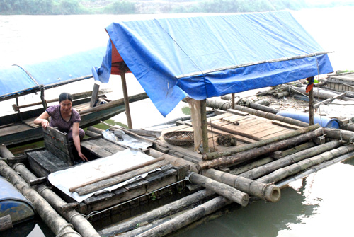 Người dân nuôi cá Chiên trong lồng trên sông Lô tại TP Tuyên Quang, tỉnh Tuyên Quang.