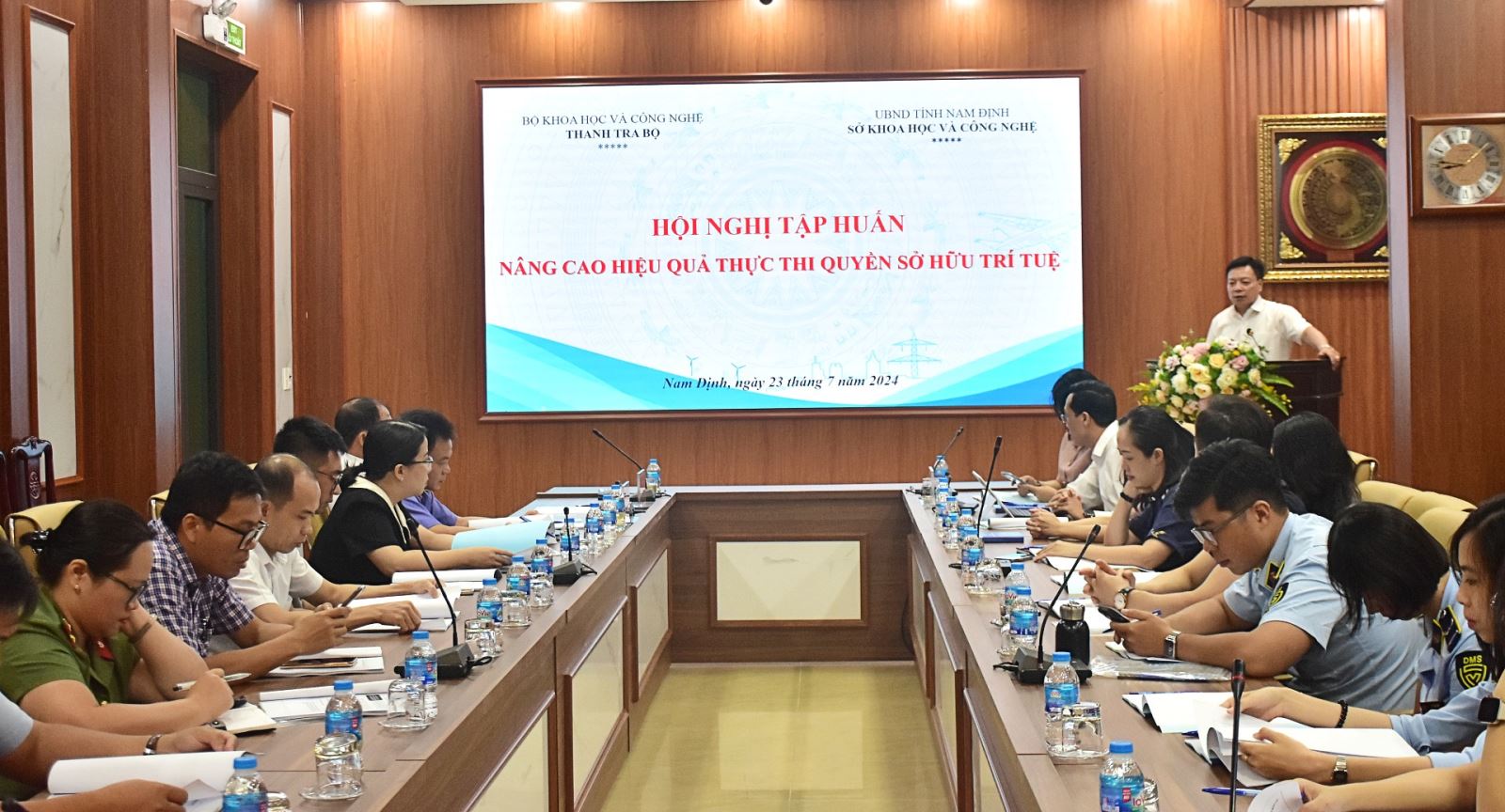 Nhằm tăng cường công tác tuyên truyền pháp luật về sở hữu trí tuệ (SHTT), đồng thời bồi dưỡng chuyên môn nghiệp vụ cho đội ngũ cán bộ làm công tác bảo vệ quyền SHTT tại địa phương, ngày 23/07/2024, Sở Khoa học và Công nghệ (KH&CN) tỉnh Nam Định phối hợp với Thanh tra Bộ KH&CN tổ chức Hội nghị “Tập huấn nâng cao hiệu quả thực thi quyền sở hữu trí tuệ” cho lãnh đạo và cán bộ cơ quan quản lý và thực thi có liên quan đến lĩnh vực SHTT.