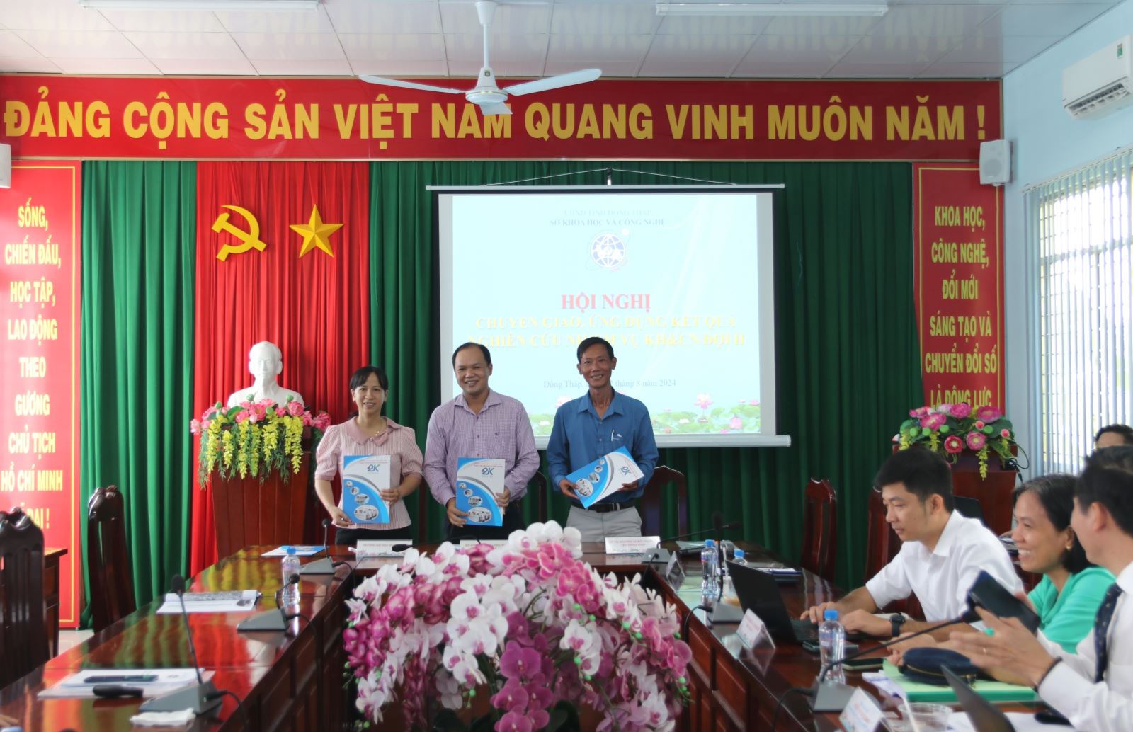 Ngày 02/08/2024, tại Trung tâm Kiểm định và Kiểm nghiệm Đồng Tháp, Sở Khoa học và Công nghệ Đồng Tháp đã tổ chức Hội nghị chuyển giao, ứng dụng kết quả nghiên cứu nhiệm vụ khoa học và công nghệ đợt II, năm 2024. Dự và chủ trì hội nghị có ông Nguyễn Thành Tài - Phó Giám đốc Sở Khoa học và Công nghệ Đồng Tháp, đại diện các đơn vị tiếp nhận sản phẩm khoa học và thành viên thực hiện đề tài nghiên cứu.