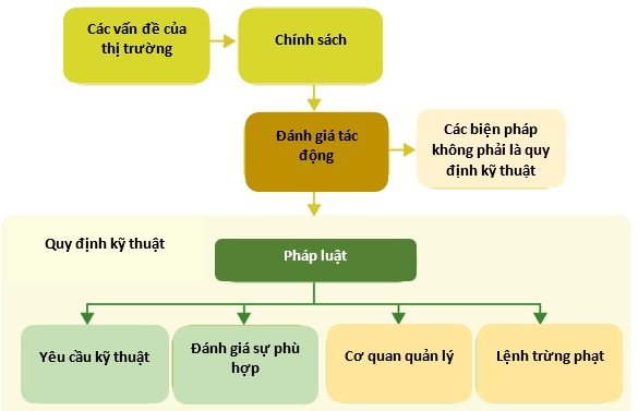 Ở Việt Nam có 12 danh mục hàng hóa thuộc diện quản lý của các bộ/ngành liên quan đến xây dựng quy chuẩn kỹ thuật. Những danh mục này đôi khi bao gồm các sản phẩm giống nhau, ví dụ: phụ gia sữa do Bộ Công Thương và Bộ Y tế quy định; sơn do Bộ Công Thương quy định (chủ yếu về thành phần hóa học) và Bộ Xây dựng; một số máy nông nghiệp do Bộ Công Thương, Bộ Nông nghiệp và Phát triển Nông thôn, Bộ Giao thông Vận tải quản lý. Do đó, các quy chuẩn kỹ thuật khác nhau được áp dụng cho các sản phẩm này. Điều này dẫn đến sự chồng chéo trong thử nghiệm, vấn đề trùng lặp thử nghiệm trong phòng thí nghiệm, công nhận kết quả thử nghiệm và các phòng thí nghiệm được chỉ định.