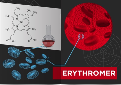 Erythromer là loại máu nhân tạo có khả năng mô phỏng một số chức năng của tế bào hồng cầu. Erythromer có kích thước bằng 1/50 tế bào hồng cầu bình thường của người và có thể được bảo quản dưới dạng bột đông khô ở nhiệt độ phòng. Máu bột đông khô được đóng gói trong túi nhựa loại IV và có thể dễ dàng mang theo trong xe cứu thương hoặc túi đựng trong 1 năm, khi cần chỉ cần pha với nước vô trùng là có máu để sẵn sàng truyền [3]. Erythromer bao bọc hemoglobin (Hb) của người đã được tinh chế trong một “vỏ” hạt nano lipid mềm, được thiết kế để mô phỏng các tế bào hồng cầu người và tối ưu hóa cho tất cả các nhóm máu. Lớp phủ nano này cung cấp cho Erythromer một hệ thống kiểm soát để liên kết ôxy với những thay đổi về độ pH. Giống như các tế bào hồng cầu, Erythromer sử dụng một phân tử gọi là 2,3-DPG, để điều chỉnh ái lực của Hb đối với ôxy. Trong phổi, 2,3-DPG liên kết với một phân tử cảm biến pH tổng hợp, KC1003, trong màng của Erythromer, cho phép Hb hấp thụ ôxy. Trong các mô có tính axit hơn, 2,3-DPG được giải phóng và gắn vào Hb, thúc đẩy giải phóng ôxy. Nó cũng làm chậm quá trình hấp thụ nitric oxide (NO) - một chất giãn mạch, do đó ổn định sự lưu thông của dòng máu. Lớp phủ này cũng tạo ra sự "im lặng miễn dịch" nên nó có thể được truyền cho bất kỳ ai, với bất kể nhóm máu nào [4]