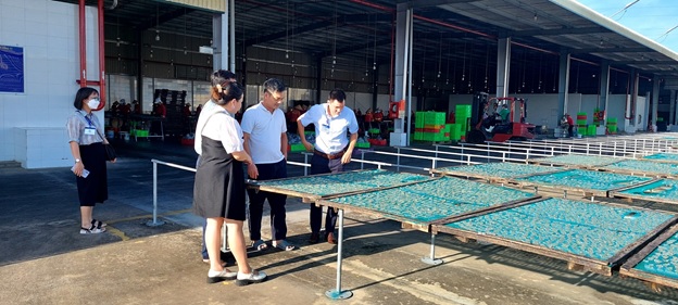 Nhóm nghiên cứu khảo sát sản phẩm chế biến thủy sản ứng dụng công nghệ cao tại Bến Tre.