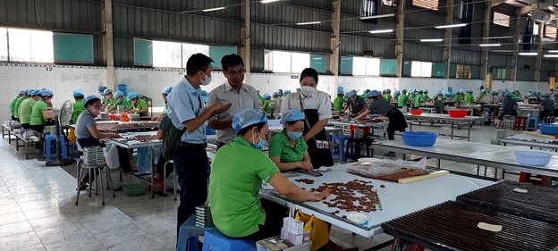 Nhóm nghiên cứu khảo sát trình độ năng lực công nghệ sản xuất của doanh nghiệp sản xuất kẹo dừa ở Bến Tre.