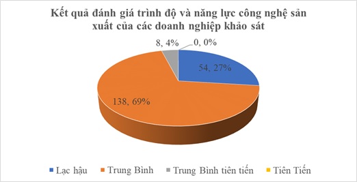 (3) Năng lực làm chủ công nghệ: 166/200 doanh nghiệp có năng lực làm chủ công nghệ thấp; 34/200 doanh nghiệp có năng lực làm chủ công nghệ cao.