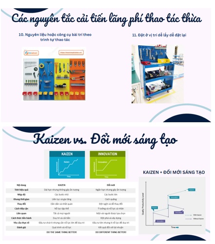 Về công cụ Kaizen có 4 “cánh cửa” là: Phát hiện vấn đề; Lên ý tưởng và cải tiến; Đánh giá; Cải tiến liên tục.