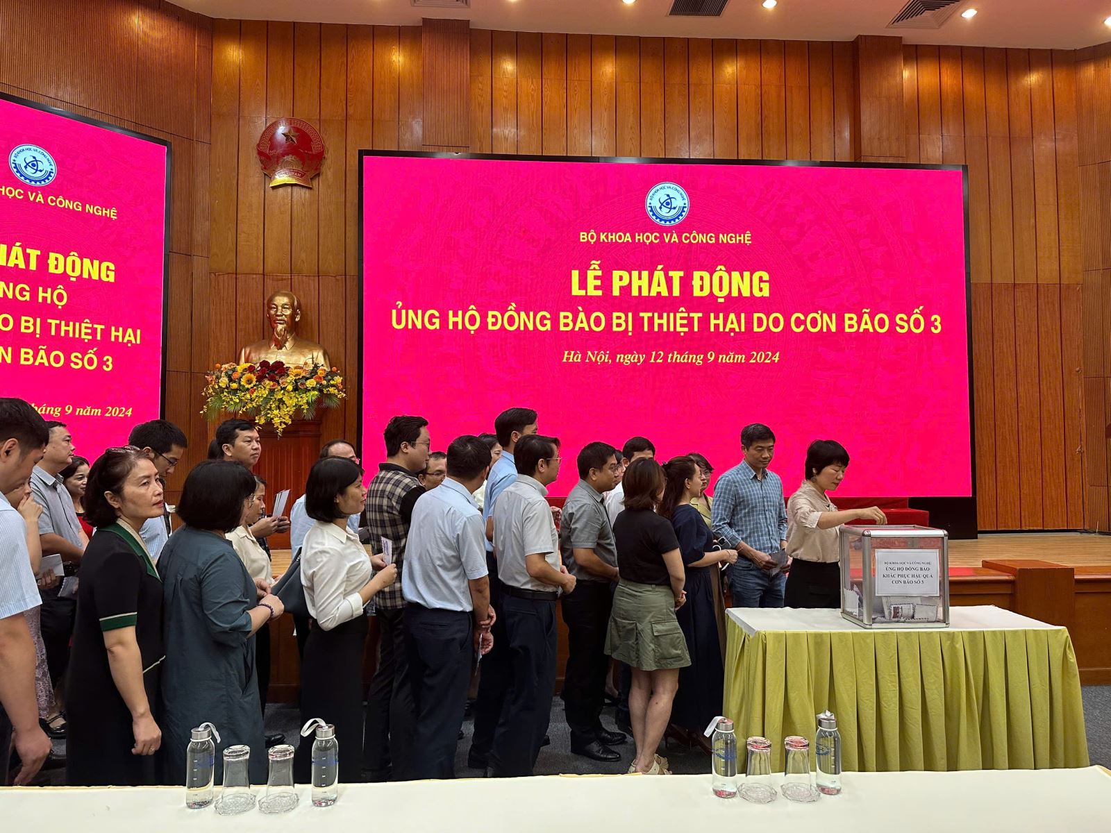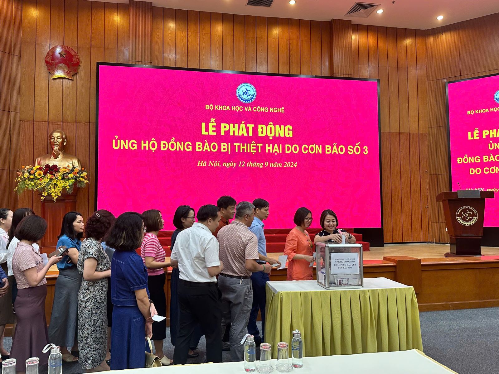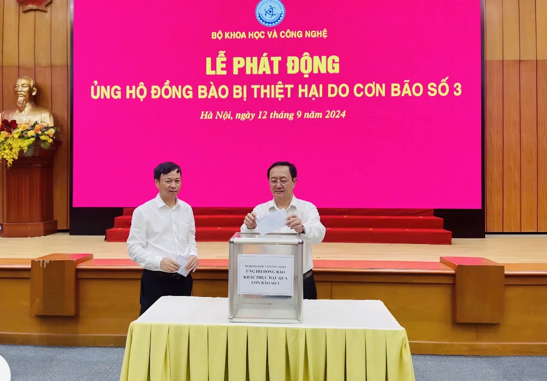 Bộ trưởng Bộ Khoa học và Công nghệ Huỳnh Thành Đạt phát động ủng hộ đồng bào bị thiệt hại do cơn bão số 3 gây ra.