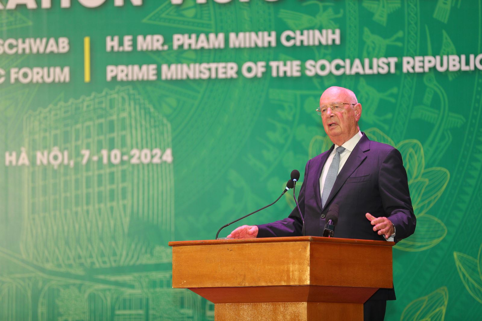 GS Klaus Schwab đưa ra những gợi ý để Việt Nam có thể nắm bắt những cơ hội phía trước, nhằm tạo ra một tương lai thịnh vượng, bền vững và bao trùm. Thông qua các sáng kiến như Trung tâm Cách mạng công nghiệp lần thứ tư, WEF đang nỗ lực cung cấp các nguồn lực và kết nối cần thiết để các quốc gia như Việt Nam phát triển các trung tâm đổi mới sáng tạo, đầu tư vào hạ tầng số và chuẩn bị lực lượng lao động thích ứng với những thách thức phía trước.