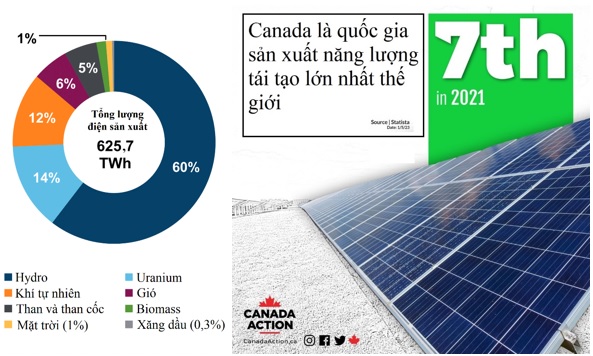 Tháng 12/2020, Chính phủ Canada đã công bố “Kế hoạch môi trường trong lành và nền kinh tế vững mạnh”, bao gồm 118 chương trình, dự án trị giá hơn 40,32 tỷ CAD để phát triển năng lượng sạch và tái tạo; riêng lĩnh vực điện tái tạo có tới hơn 60 dự án, chương trình với tổng kinh phí đầu tư xấp xỉ 15 tỷ CAD.