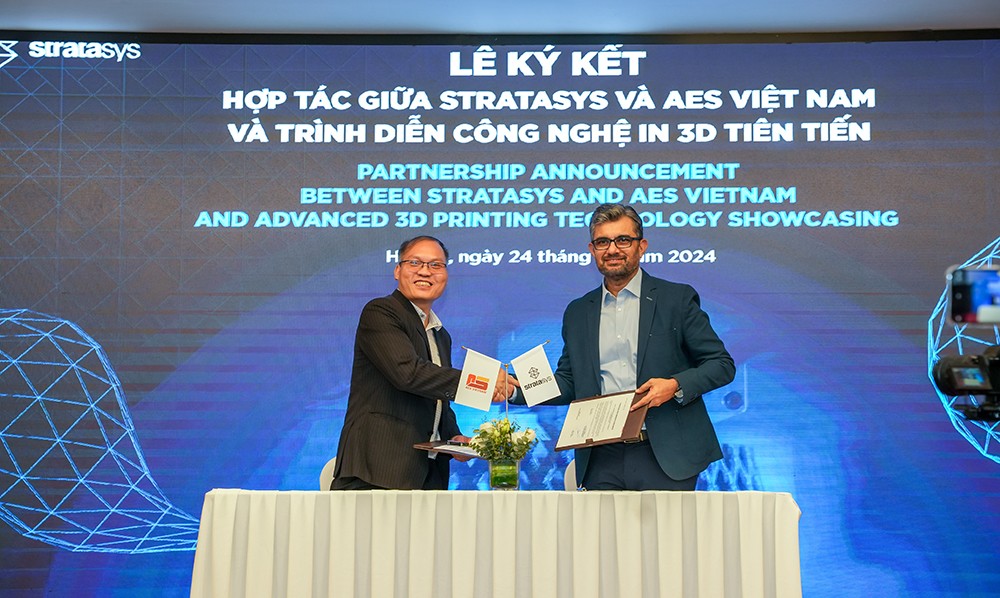 Với nhu cầu tăng cao về các giải pháp sản xuất linh hoạt và sáng tạo trong kỷ nguyên công nghiệp 4.0, Công ty AES Việt Nam và tập đoàn Stratasys đã chính thức bắt tay hợp tác. Bằng việc kết hợp chuyên môn về tự động hóa và giải pháp công nghệ của AES Việt Nam cùng với công nghệ in 3D tiên tiến của tập đoàn Stratasys, mối quan hệ này hướng đến mục tiêu nâng cao hiệu suất sản xuất cho các ngành công nghiệp chủ chốt như ô tô, hàng không vũ trụ, y tế và điện tử.