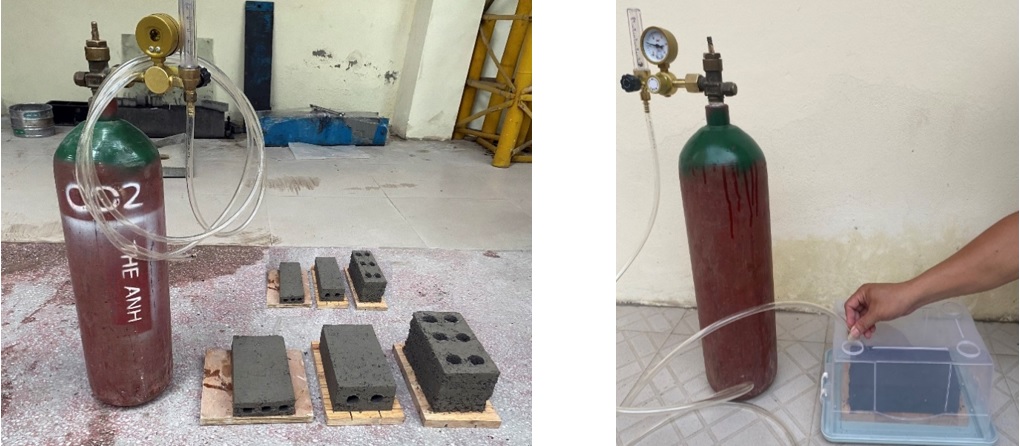 Quá trình dẫn khí CO2 vào trong thùng dưỡng hộ mẫu sản phẩm sau khi tạo hình