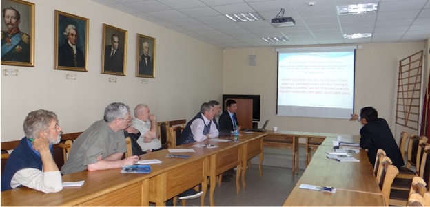 PGS.TS Đào Đình Châm và cộng sự làm việc với các chuyên gia Viện Địa lý Thái Bình Dương - Phân viện Viễn Đông, Viện Hàn lâm Khoa học Nga.