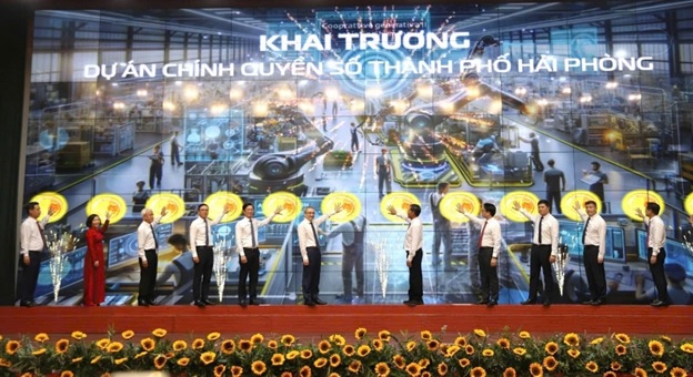 Bấm nút khai trương Dự án chính quyền số thành phố Hải Phòng.