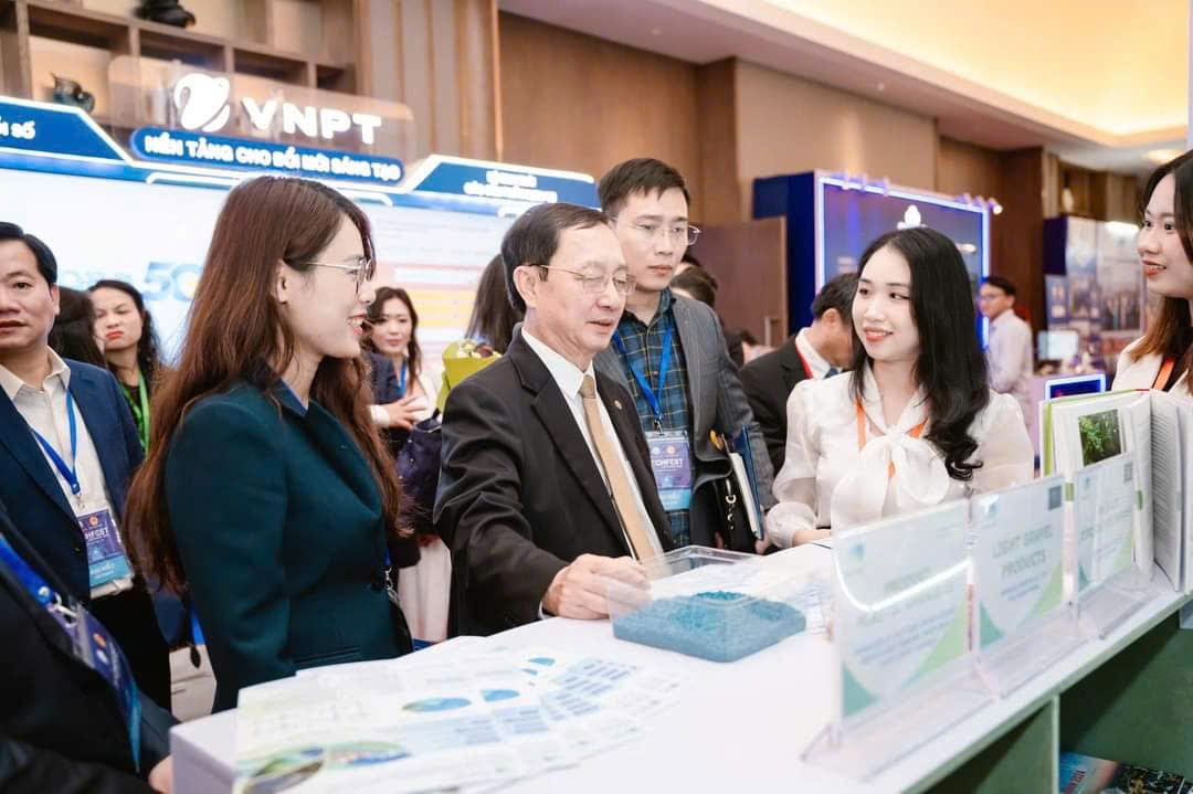 Các đại biểu tham quan gian hàng tại Triển lãm sản phẩm/dịch vụ khởi nghiệp sáng tạo.