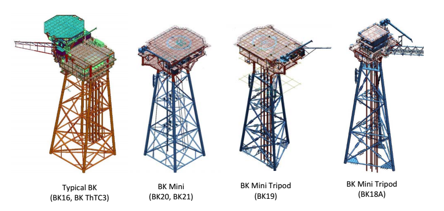 Giàn BK thực chất là một giàn đầu giếng (sattlite wellhead platform) được thiết kế với kết cấu và thiết bị đơn giản, khoan giếng bằng giàn khoan tự nâng, có chức năng khai thác dầu khí để vận chuyển đến giàn công nghệ trung tâm.