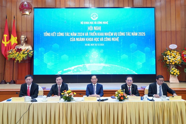 Phó Thủ tướng Chính phủ Bùi Thanh Sơn và Lãnh đạo Bộ Khoa học và Công nghệ chủ trì và điều hành Hội nghị Tổng kết công tác năm 2024 và triển khai nhiệm vụ năm 2025 của Bộ Khoa học và Công nghệ tổ chức ngày 30/12/2024.