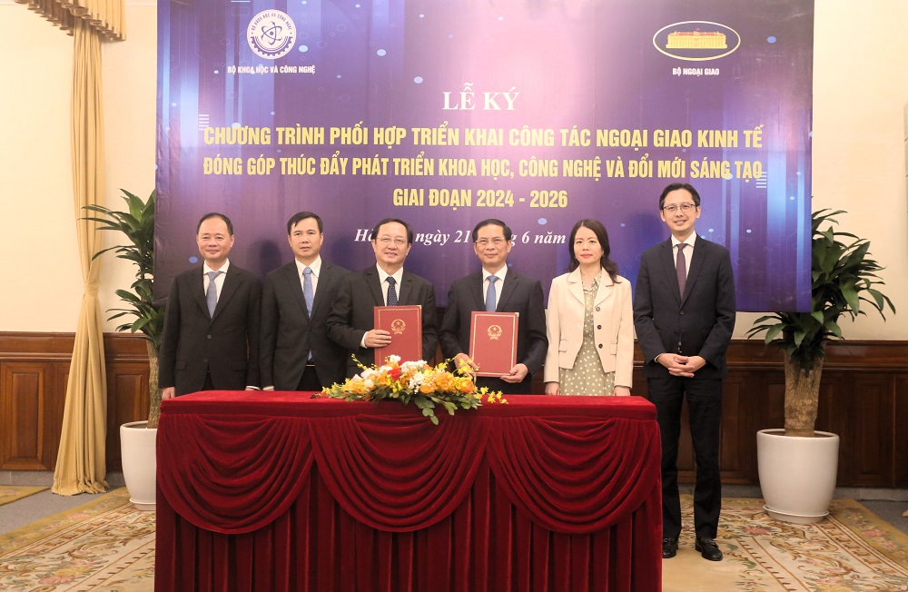 Lễ ký Chương trình phối hợp triển khai công tác ngoại giao kinh tế góp phần thúc đẩy phát triển KH,CN&ĐMST giai đoạn 2024-2026 giữa Bộ Khoa học và Công nghệ và Bộ Ngoại giao, tháng 6/2024.