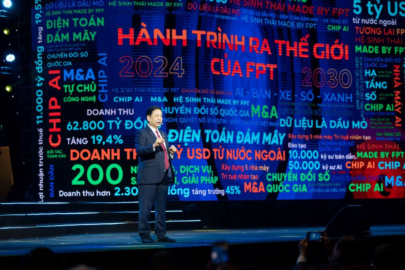 Thứ nhất, Tập đoàn FPT sẽ đầu tư vào các công nghệ trụ cột: AI, bán dẫn, công nghệ ô tô, chuyển đổi số và chuyển đổi xanh. Tập đoàn FPT sẽ nỗ lực làm chip AI, tập trung phát triển phần mềm ô tô (vì ô tô đang chuyển từ cơ khí sang phần mềm). Hiện tại, Tập đoàn FPT đang làm việc với các tập đoàn ô tô ở Mỹ, châu Âu... Đồng thời, Tập đoàn FPT tham gia chuyển đổi số, chuyển đổi xanh, chuyển đổi AI cho các ngành, địa phương và lĩnh vực giáo dục, y tế.