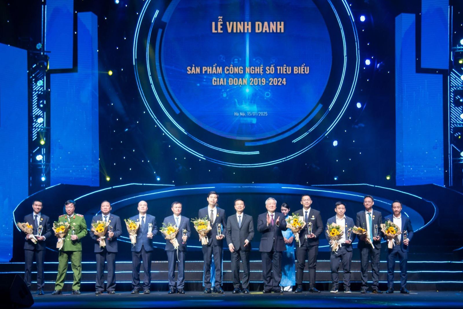 Ông Lê Hồng Việt - Tổng Giám đốc FPT Smart Cloud, Tập đoàn FPT (thứ ba từ trái sang) nhận Kỷ niệm chương vinh danh FPT.AI - Sản phẩm công nghệ số tiêu biểu Make in Vietnam giai đoạn 2019-2024.
