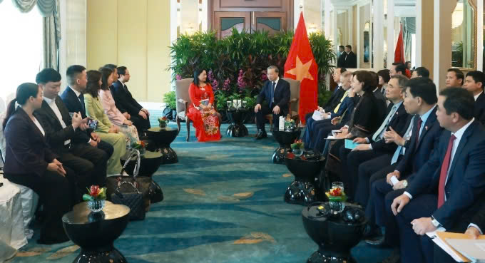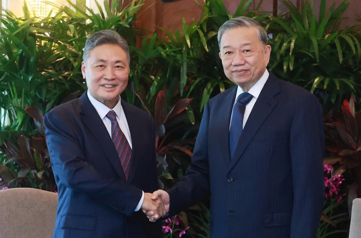 Tại cuộc gặp với ông Lim Boon Heng - Chủ tịch Tập đoàn Temasek, Tổng Bí thư Tô Lâm nhấn mạnh, Việt Nam đặt mục tiêu tăng trưởng kinh tế trên 8% trong năm 2025, tạo đà cho những năm tiếp theo. Việt Nam tiếp tục ưu tiên thu hút các dự án đầu tư trực tiếp nước ngoài (FDI) lớn để thúc đẩy tăng trưởng. Chủ tịch Tập đoàn Temasek bày tỏ sự quan tâm đầu tư vào năng lượng tái tạo, năng lượng xanh tại Việt Nam. Tương tự, ông Tow Heng Tan - Chủ tịch Tập đoàn Sembcorp cho biết, Tập đoàn muốn rót vốn vào các dự án năng lượng tái tạo và tua-bin khí. Tập đoàn Sembcorp cũng đề xuất hợp tác đào tạo trong lĩnh vực điện gió ngoài khơi. Tổng Bí thư Tô Lâm hoan nghênh sự tham gia của Tập đoàn này vào ngành năng lượng sạch tại Việt Nam.