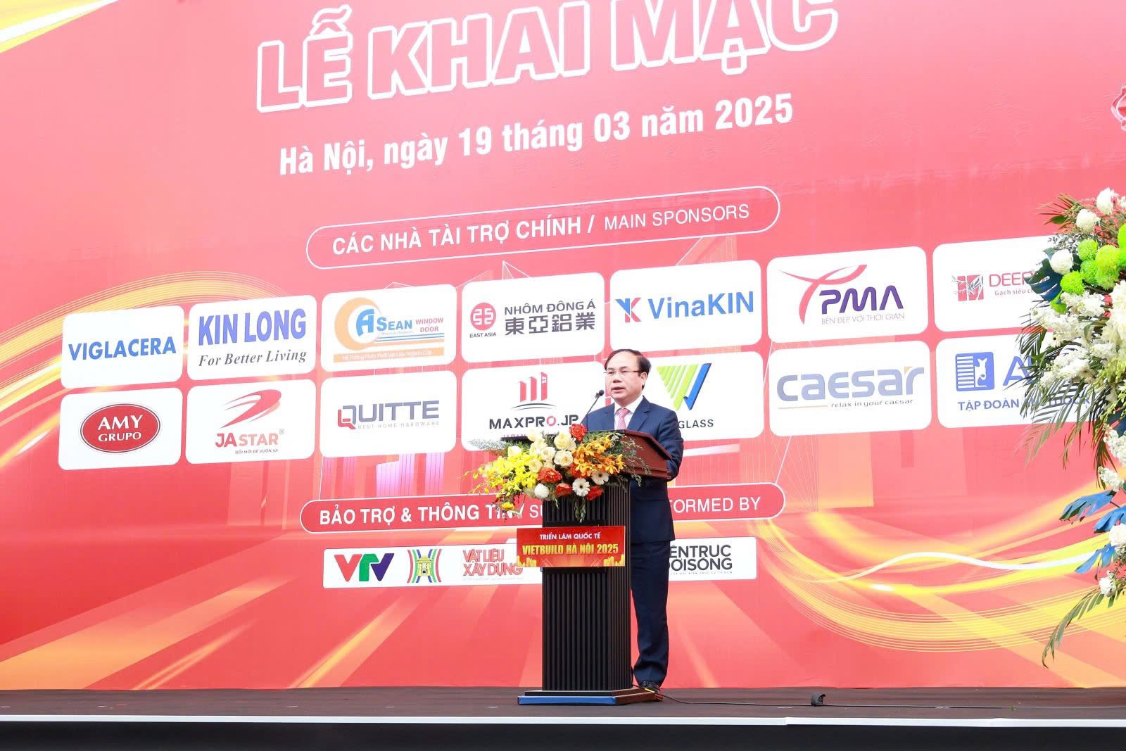 Thứ trưởng Bộ Xây dựng Nguyễn Văn Sinh phát biểu khai mạc Triển lãm ngày 19/03/2025 (nguồn: internet).