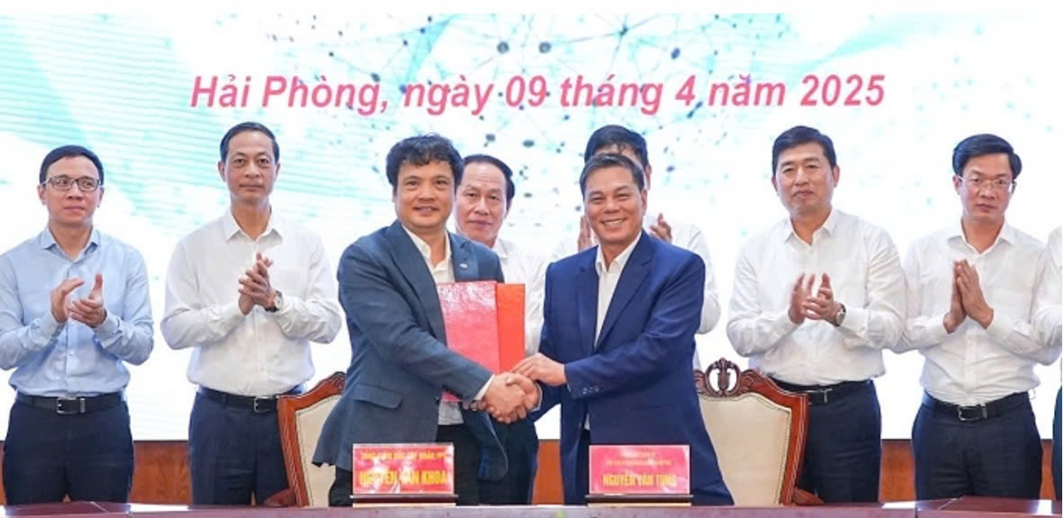 Lãnh đạo TP Hải Phòng và Tạp đoàn FPT ký thỏa thuận hợp tác (nguồn: vnexpress.net).