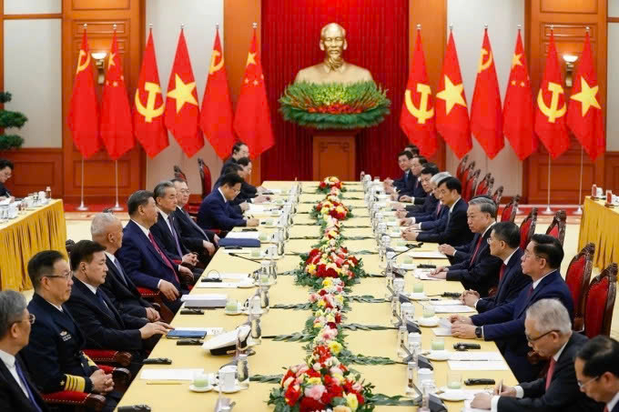 Phát biểu tại cuộc gặp, Tổng Bí thư Tô Lâm khẳng định, Việt Nam luôn xem quan hệ với Trung Quốc là một ưu tiên chiến lược, không chỉ về chính trị mà còn về kinh tế và phát triển bền vững. Việc tăng cường quan hệ này là một lựa chọn chủ động, phản ánh rõ nét đường lối đối ngoại độc lập, tự chủ của Việt Nam. Bày tỏ kỳ vọng chuyến thăm lần này sẽ mở ra một giai đoạn hợp tác sâu sắc và toàn diện hơn nữa, Tổng Bí thư Tô Lâm đánh giá cao sự gắn bó giữa hai quốc gia, đặc biệt là thông qua sáng kiến xây dựng “Cộng đồng chia sẻ tương lai Việt - Trung” mang tầm chiến lược.