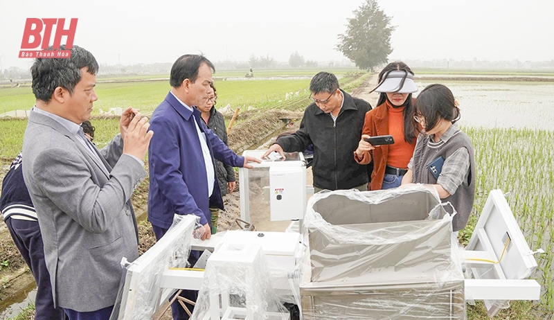 Sở Nông nghiệp và Môi trường phối hợp với Đại học Bách Khoa Hà Nội và Đại học Griffith lắp đặt hệ thống AI trong sản xuất lúa vụ xuân năm 2025 tại xã Hoằng Lộc, huyện Hoằng Hóa, tỉnh Thanh Hóa (nguồn: Báo Thanh Hóa).
