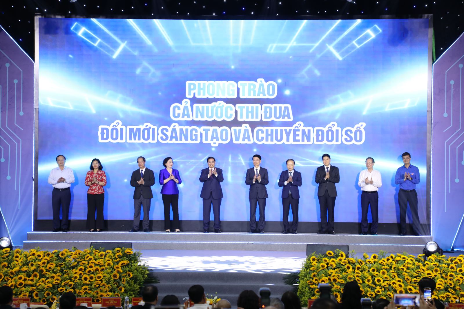 Thủ tướng Chính phủ Phạm Minh Chính, Bộ trưởng Bộ Khoa học và công nghệ Nguyễn Mạnh Hùng cùng lãnh đạo các bộ, ngành khởi động phong trào “Cả nước thi đua đổi mới sáng tạo, chuyển đổi số”.