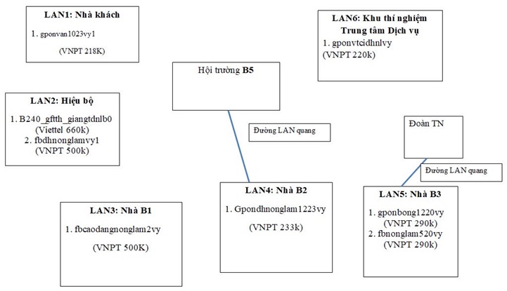 Mạng LAN của Trường Đại học Nông - Lâm Bắc Giang mang tính cục bộ cho từng cụm chức năng chứ chưa được kết nối thành mạng chung cho cả Nhà trường.