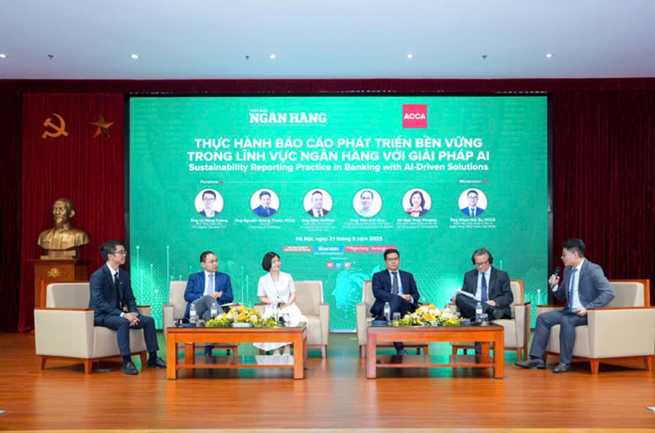 Trong bối cảnh các ngân hàng đang từng bước triển khai thực hành Báo cáo Phát triển bền vững, công nghệ, đặc biệt là trí tuệ nhân tạo (AI) được xem là một yếu tố then chốt để nâng cao hiệu quả. Phát biểu khai mạc, Phó Thống đốc Ngân hàng Nhà nước Việt Nam Phạm Thanh Hà cho biết, thời gian qua, thực hiện quyết tâm của Chính phủ với mục tiêu phát triển bền vững, Ngân hàng Nhà nước Việt Nam đã triển khai nhiều chính sách và kế hoạch hành động cụ thể nhằm thúc đẩy phát triển bền vững trong lĩnh vực ngân hàng. Ngân hàng Nhà nước Việt Nam giao nhiệm vụ cho các ngân hàng thương mại lồng ghép, đưa các nhiệm vụ, giải pháp, chỉ tiêu phát triển bền vững vào chiến lược, chương trình, kế hoạch kinh doanh, quy trình nghiệp vụ đồng thời khuyến khích các tổ chức tín dụng xây dựng và công bố Báo cáo Phát triển bền vững, công bố các cam kết xanh của tổ chức mình.