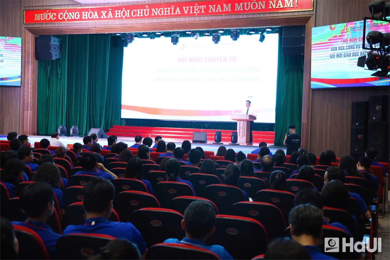 Phát biểu tại Hội nghị, TS Nguyễn Văn Thiện - Phó Hiệu trưởng Trường Đại học Công nghiệp Hà Nội đã cảm ơn những chia sẻ của diễn giả; đồng thời nhấn mạnh yêu cầu xây dựng môi trường làm việc minh bạch, dân chủ, đảm bảo tính chuyên nghiệp, trách nhiệm, năng động, hiệu quả. Trường Đại học Công nghiệp Hà Nội đang thực hiện các giải pháp để xây dựng Nhà trường hiện đại, nhân văn, hạnh phúc phù hợp với mục tiêu đổi mới quản trị đại học, tạo nền tảng cho sự phát triển bền vững của nhà trường. Do vậy, những thông điệp ý nghĩa từ Hội nghị đã khơi dậy nhiều suy ngẫm, trăn trở và khát vọng chung tay xây dựng một môi trường làm việc chuẩn mực, chuyên nghiệp và giàu tính nhân văn tại Trường Đại học Công nghiệp Hà Nội. Đây là nền tảng vững chắc để Nhà trường tiếp tục đổi mới, nâng cao chất lượng đào tạo và nghiên cứu khoa học, đáp ứng yêu cầu phát triển của đất nước trong kỷ nguyên mới.