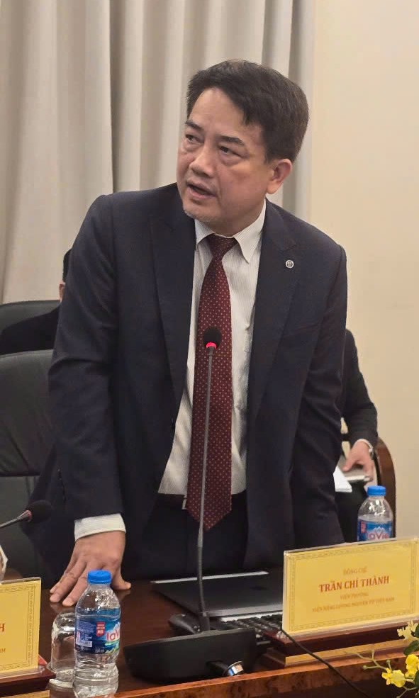 TS Trần Chí Thành - Viện trưởng Viện Năng lượng Nguyên tử Việt Nam báo cáo tại buổi làm việc.