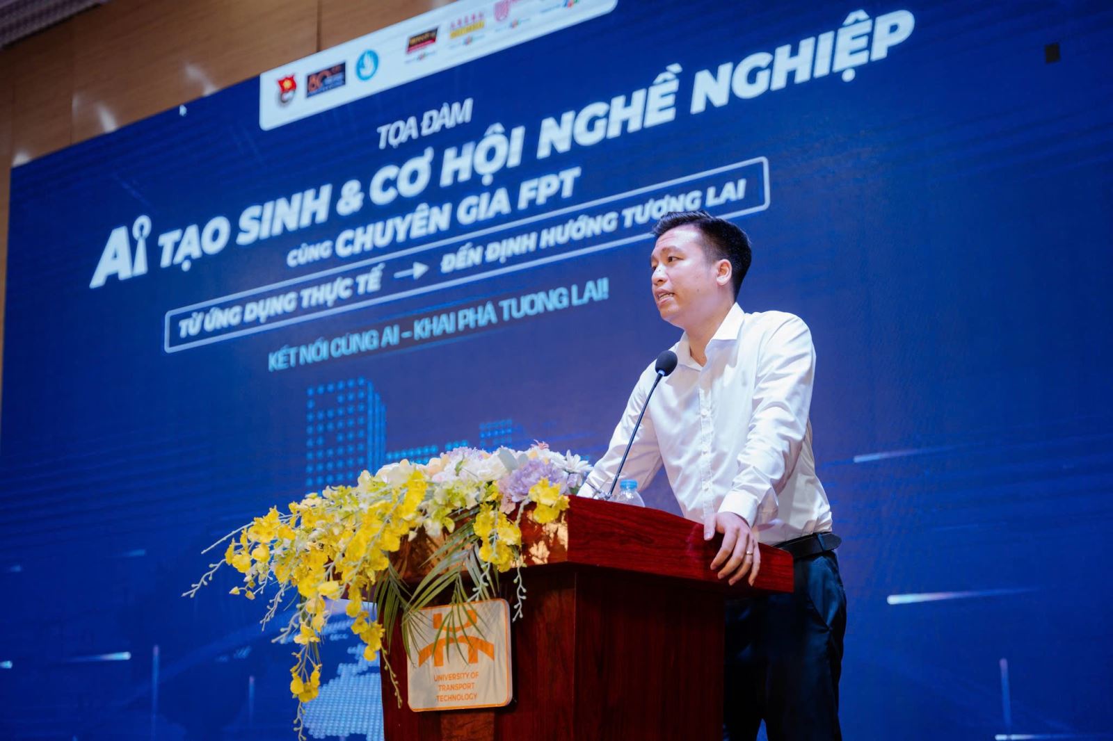 Trong bối cảnh cuộc Cách mạng công nghiệp 4.0 đang phát triển và ảnh hưởng sâu rộng đến tất cả các khía cạnh của đời sống - xã hội, trí tuệ nhân tạo tạo sinh (Generative AI) đang trở thành lực đẩy mạnh mẽ, mở ra nhiều cơ hội nghề nghiệp mới cho sinh viên và người lao động. Nhận thức được tầm quan trọng này, Trường Đại học Công nghệ Giao thông Vận tải đã tổ chức nhiều hoạt động nhằm trang bị cho sinh viên những kỹ năng cần thiết để thích ứng với xu hướng công nghệ mới, trong đó có Tọa đàm “AI tạo sinh - Cánh cửa mở ra cơ hội nghề nghiệp mới”.