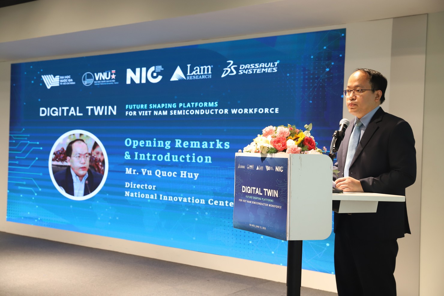 Ngày 12-13/06/2025, Trung tâm Đổi mới sáng tạo Quốc gia (NIC) thuộc Bộ Tài chính phối hợp cùng Đại học Quốc gia Hà Nội, Đại học Quốc gia TP Hồ Chí Minh và 2 tập đoàn công nghệ hàng đầu thế giới Lam Research (Hoa Kỳ) và Dassault Systemes (Cộng hoà Pháp) tổ chức Diễn đàn “Digital Twin: Công nghệ định hình tương lai ngành công nghiệp bán dẫn Việt Nam”.