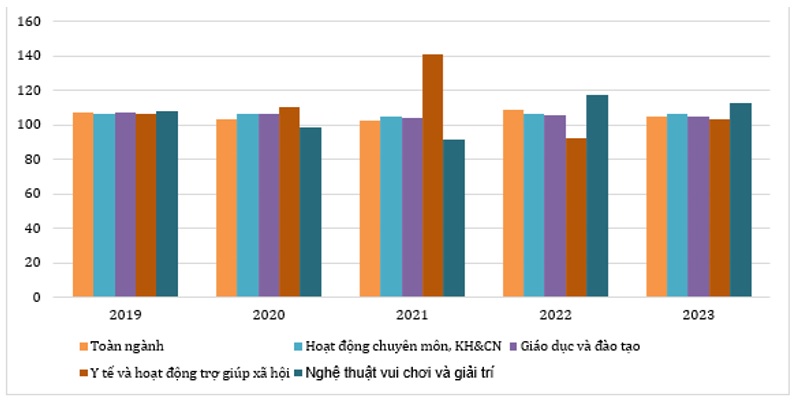 Hình 2. Chỉ số phát triển một số ngành dịch vụ sự nghiệp công. Nguồn: Niên giám thống kê 2023.