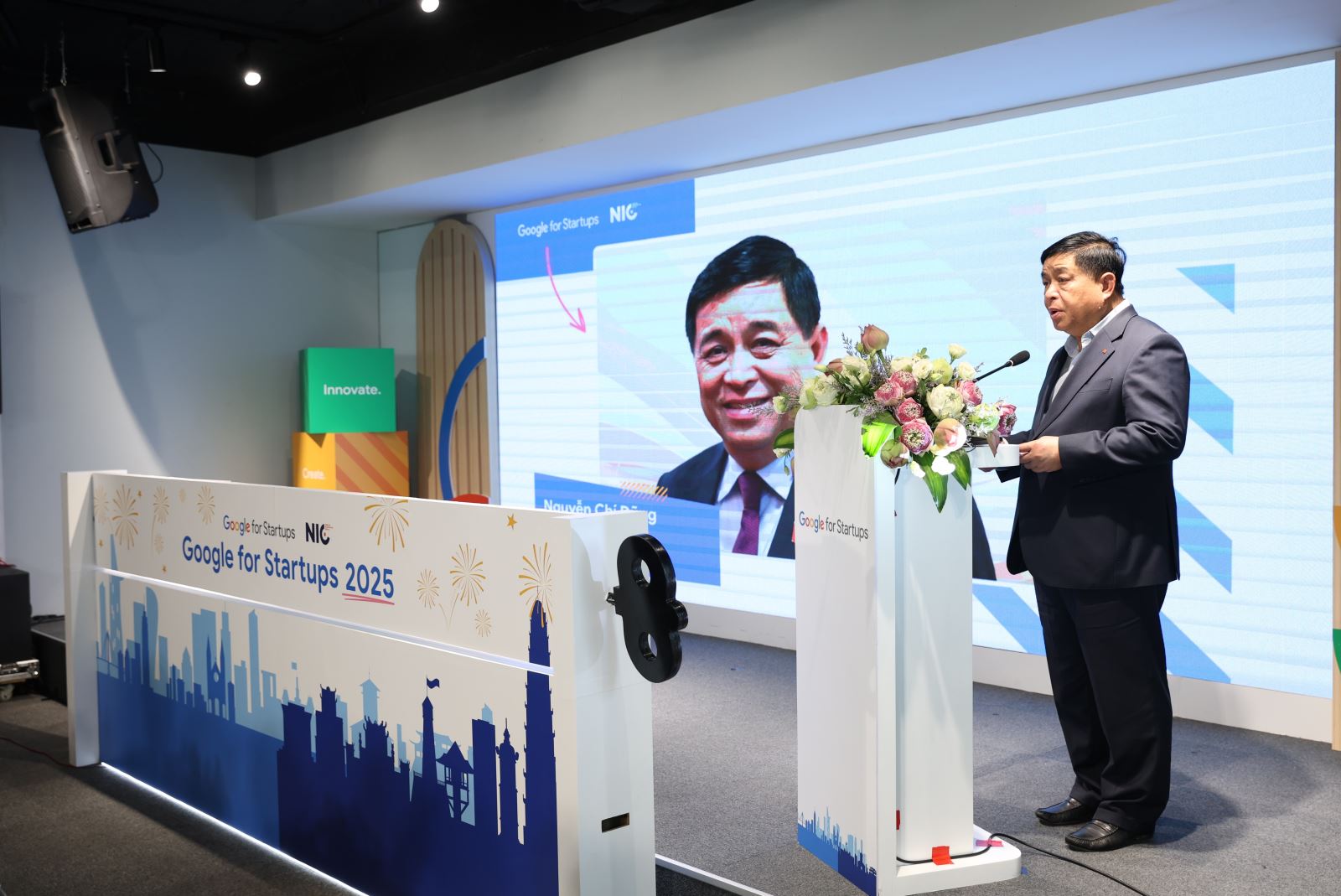 Phát biểu chỉ đạo tại sự kiện, Phó Thủ tướng Chính phủ Nguyễn Chí Dũng nhấn mạnh, Đảng, Chính phủ Việt Nam đã xác định S.T.I.D là con đường ngắn nhất, là yếu tố có ý nghĩa sống còn để Việt Nam thực hiện khát vọng phát triển nhanh, bền vững, bao trùm và tự chủ để thực hiện thành công 2 mục tiêu 100 năm của đất nước. Khoa học, công nghệ và đổi mới sáng tạo không chỉ là động lực tăng trưởng kinh tế, mà còn là con đường tất yếu để xây dựng một Việt Nam thịnh vượng, tăng năng suất lao động, năng lực cạnh tranh quốc gia, bảo vệ môi trường, ứng phó biến đổi khí hậu và nâng cao chất lượng đời sống nhân dân. Vai trò chiến lược của S.T.I.D tiếp tục được xác định nhất quán và phát triển thành một hệ thống chủ trương, định hướng, quan điểm bao trùm, toàn diện và dài hạn. Phó Thủ tướng đánh giá sự hợp tác giữa NIC và Google hết sức ý nghĩa, góp phần thúc đẩy hệ sinh thái khởi nghiệp, đổi mới sáng tạo của Việt Nam trong các lĩnh vực công nghệ chiến lược, đặc biệt là AI. Đây cũng là hành động thiết thực nhằm cụ thể hóa chủ trương, định hướng ưu tiên nghiên cứu, đào tạo, ươm tạo và ứng dụng AI