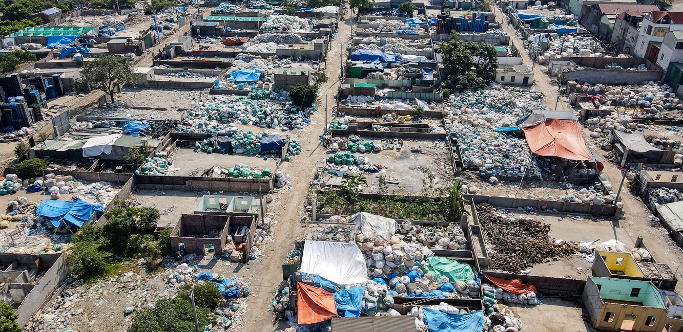 Ô nhiễm phế thải nhựa tại làng nghề Minh Khai, thị trần Như Quỳnh, huyện Văn Lâm, tỉnh Hưng Yên.