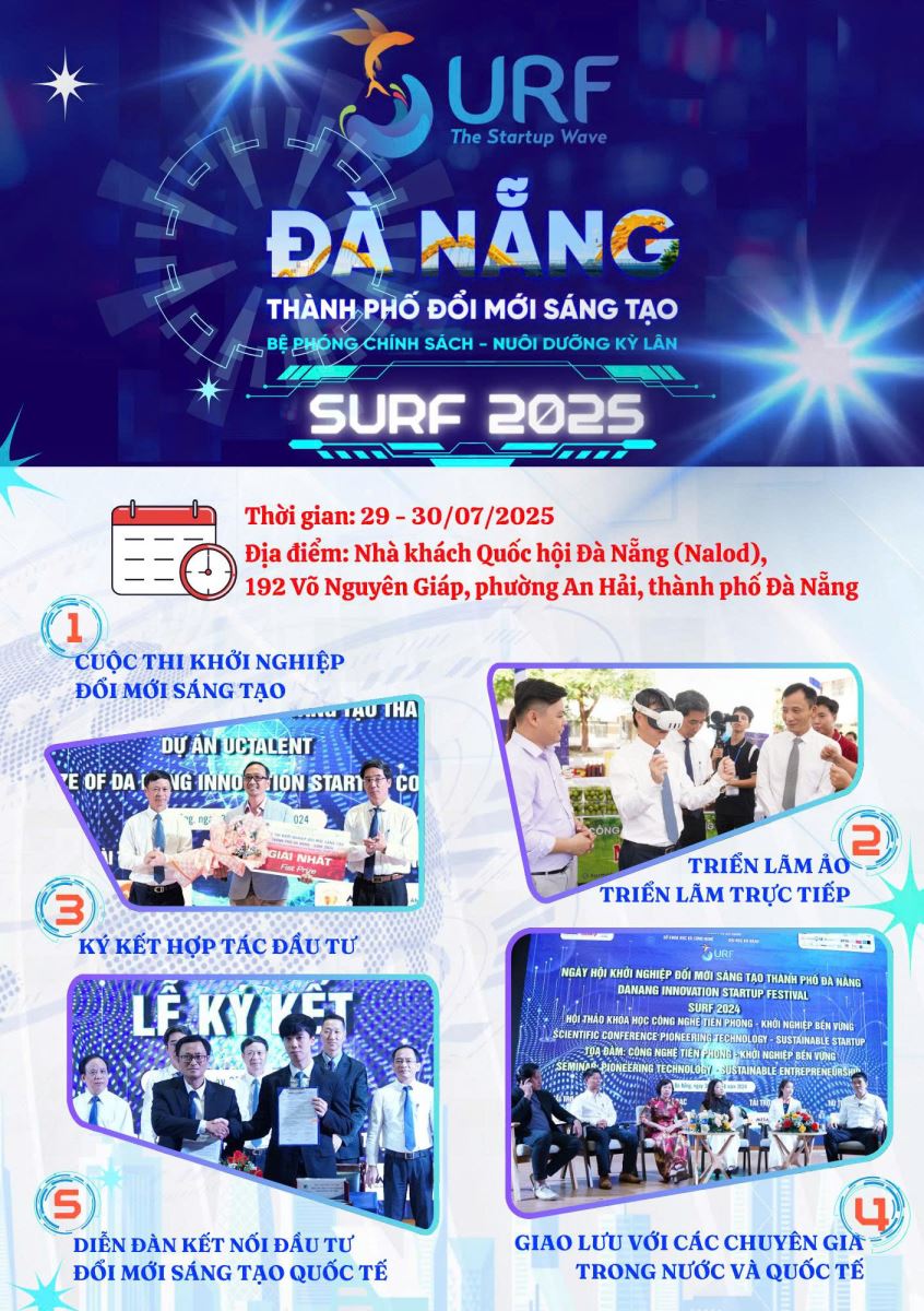 SURF 2025 được tổ chức với quy mô mở rộng và các nội dung chuyên môn ngày càng sâu sắc, nhằm hiện thực hóa mục tiêu đưa Đà Nẵng trở thành trung tâm đổi mới sáng tạo hàng đầu khu vực. Trong khuôn khổ sự kiện, nhiều hoạt động nổi bật sẽ diễn ra, thu hút sự quan tâm của giới khởi nghiệp cũng như cộng đồng công nghệ.
