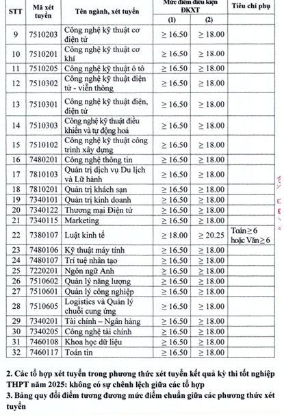 Ngày 22/07/2025, Trường Đại học Điện lực (Bộ Công Thương) đã công bố ngưỡng đảm bảo chất lượng (điểm sàn) và bảng quy đổi tương đương mức điểm chuẩn giữa các phương thức xét tuyển.