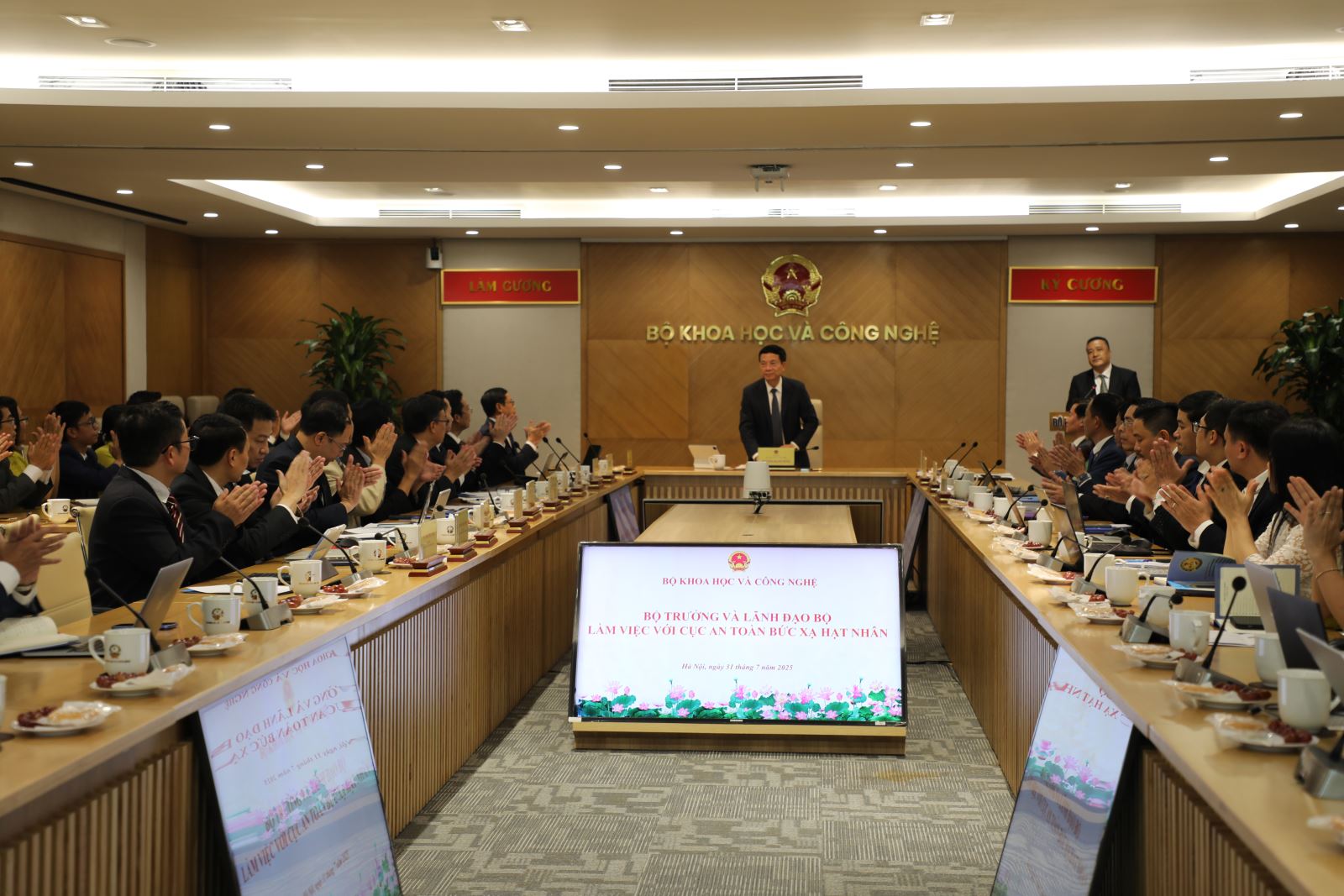 Đối với những kiến nghị, đề xuất của Cục ATBXHT, Bộ trưởng Nguyễn Mạnh Hùng đã giao các đơn vị chức năng có phương án xử lý ngay trong tháng 8 và chậm nhất là cuối năm 2025. Bộ trưởng Nguyễn Mạnh Hùng cho rằng, trong bối cảnh mới, Cục phải có sứ mệnh mới vì Cục là cơ quan quản lý quốc gia về an toàn và an ninh hạt nhân sau khi Luật NLNT 2025 được thông qua. Cục cần hoàn thiện các thông tư hướng dẫn thi hành để Luật NLNT triển khai có hiệu quả vào thực tiễn. Cục cần xây dựng các khuyến nghị chính sách cho Bộ, Chính phủ, Trung ương về các cơ chế, chính sách nhằm thúc đẩy phát triển và ứng dụng NLNT.
