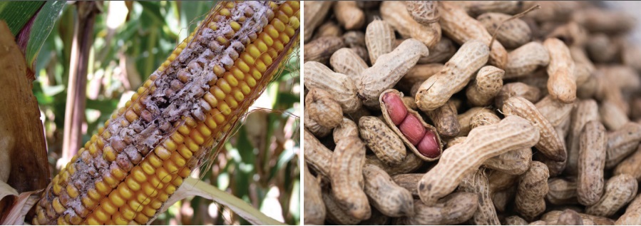 Ngô, lạc - hai loại ngũ cốc phổ biến rất dễ bị mốc và nhiễm Aflatoxin.
