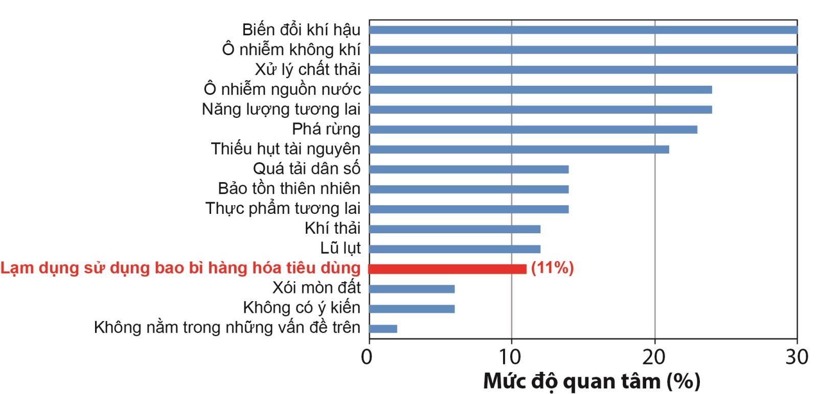 Quá trình sản xuất và tái chế nhựa đã trực tiếp sinh ra các dạng vi nhựa, tác động xấu đến toàn bộ sinh quyển. Các dạng vi nhựa này dần dần tích lũy trong môi trường để trở thành một chất gây ô nhiễm mới và phổ biến hiện nay [1]. Tuy vậy, việc lạm dụng bao bì nhựa vẫn chưa thực sự nhận được sự quan tâm so với những nguy cơ gây ô nhiễm môi trường khác (hình 1). Các nghiên cứu về ô nhiễm vi nhựa thường chỉ tập trung chủ yếu vào hệ sinh thái nước như đại dương [2], sông ngòi [3], nước ngầm [4] và các môi trường nước ngọt khác. Gần đây, trọng tâm của hướng nghiên cứu này đã được mở rộng và hướng đến ảnh hưởng của vi nhựa đối với môi trường cạn, đặc biệt là đối tượng cây trồng. Mặc dù vậy, việc tiếp cận cơ chế tác động của vi nhựa đến hệ sinh thái trên cạn vẫn còn gặp nhiều khó khăn do thiếu phương pháp xác định và quan sát vi nhựa trong đất.