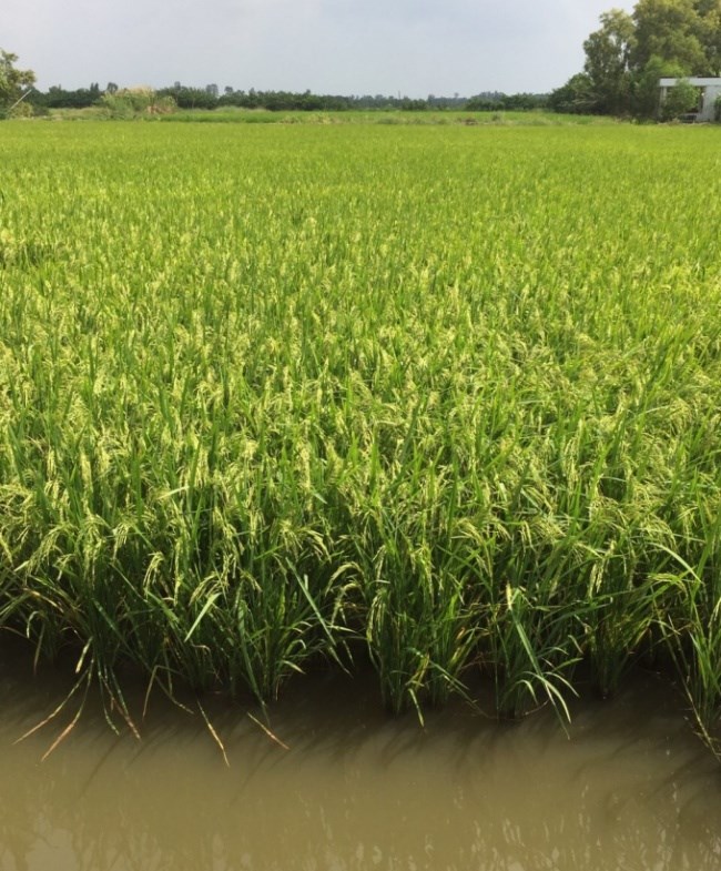 Lúa lai thơm 6 không bị đổ ngã trên đất lúa - tôm