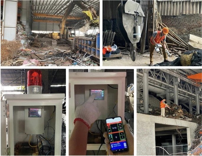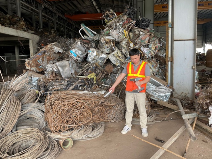 Nhóm nghiên cứu thử nghiệm thiết bị tại cơ sở thu mua và tái chế kim loại ở tỉnh Bắc Ninh.