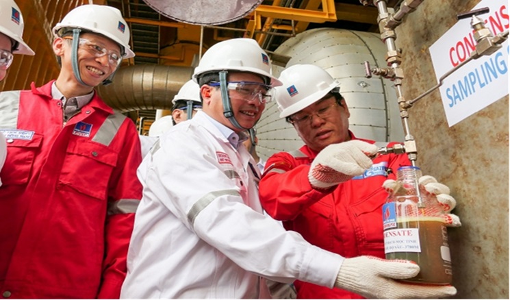 Kiểm tra mẫu condensate tại giàn khai thác Hải Thạch.