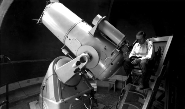 Nhà thiên văn học Fritz Zwicky đang quan sát vũ trụ từ kính viễn vọng Schmidt tại Đài thiên văn Palomar (California, Mỹ) vào năm 1930.