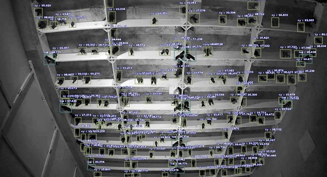 Kết quả ứng dụng ImageAI để thực hiện nhận dạng chim yến trên hình ảnh bằng mô hình được thể hiện ở hình 3. So sánh giữa kết quả gán nhãn và nhận dạng tại hình 3 cho thấy kết quả nhận dạng chim yến có độ chính xác cao. Độ chính xác của giai đoạn nhận dạng phần lớn phụ thuộc vào chất lượng ảnh thu nhận, đặc trưng ảnh được sử dụng, đồng thời phụ thuộc vào độ chính xác của mô hình huấn luyện. Môi trường bên trong nhà nuôi chim yến thường có độ sáng thấp (nhỏ hơn 0,1 lux) nên gặp nhiều khó khăn trong việc thu hình ảnh có chất lượng tốt. Một số vùng ảnh có mật độ chim yến dày đặc hay ảnh mờ sẽ dẫn đến kết quả sai lệch.