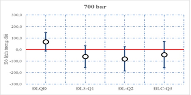 Hình 1. Lĩnh vực áp suất - một kết quả hiệu chuẩn tại điểm đo 700 bar