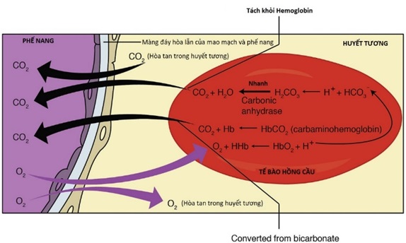 Hình 1. Cơ chế trao đổi khí phế nang - mao mạch (nguồn: The physiological Society).